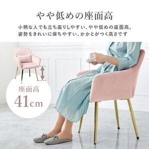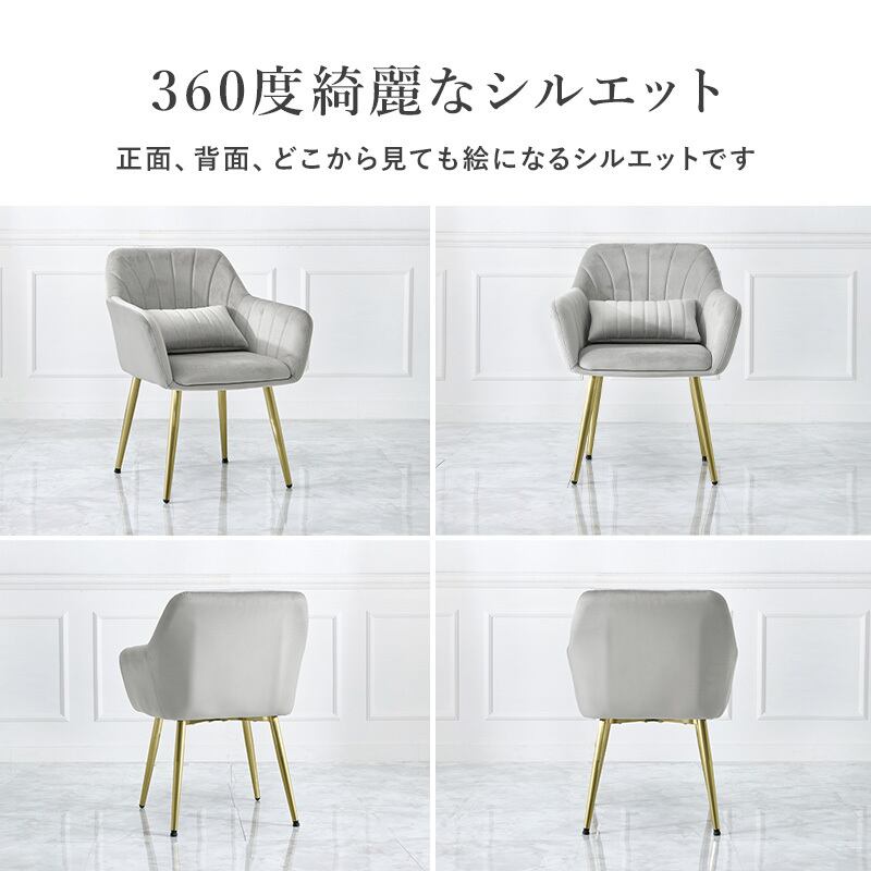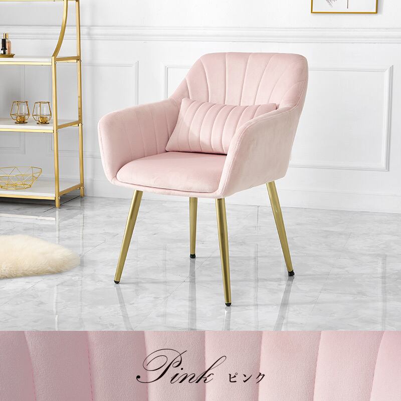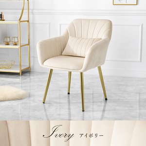 貝殻のようなデザインの座面にゴールドの脚がエレガントなインテリアチェア。チェアとおそろいの可愛いクッション付き