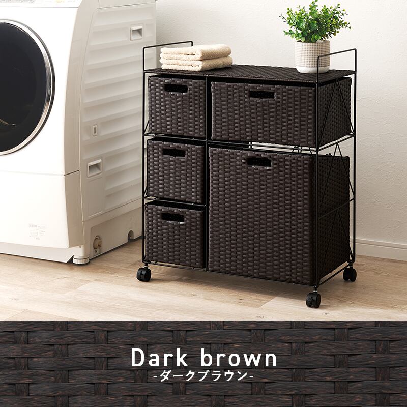 [幅65cm] ラタン調収納ラック ランドリーチェスト サニタリーラック 8601