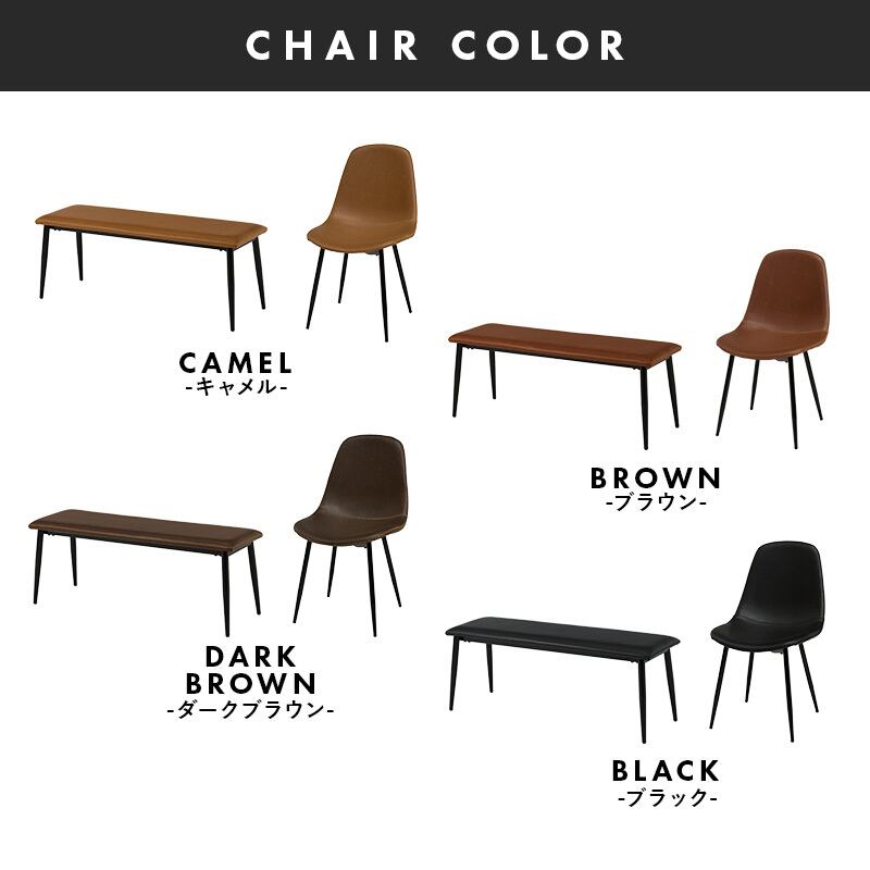 スタイリッシュなデザインのテーブルにヴィンテージ調の合成皮革を使用したチェア・ベンチを合わせたダイニング4点セット