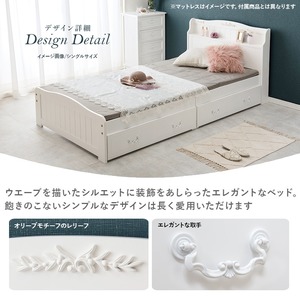 ウェーブを描いたシルエットに装飾をあしらったエレガントなベッド。衣類や小物などを収納できる引出し付き。しっかりとした寝心地のボンネルコイルマットレスセット
