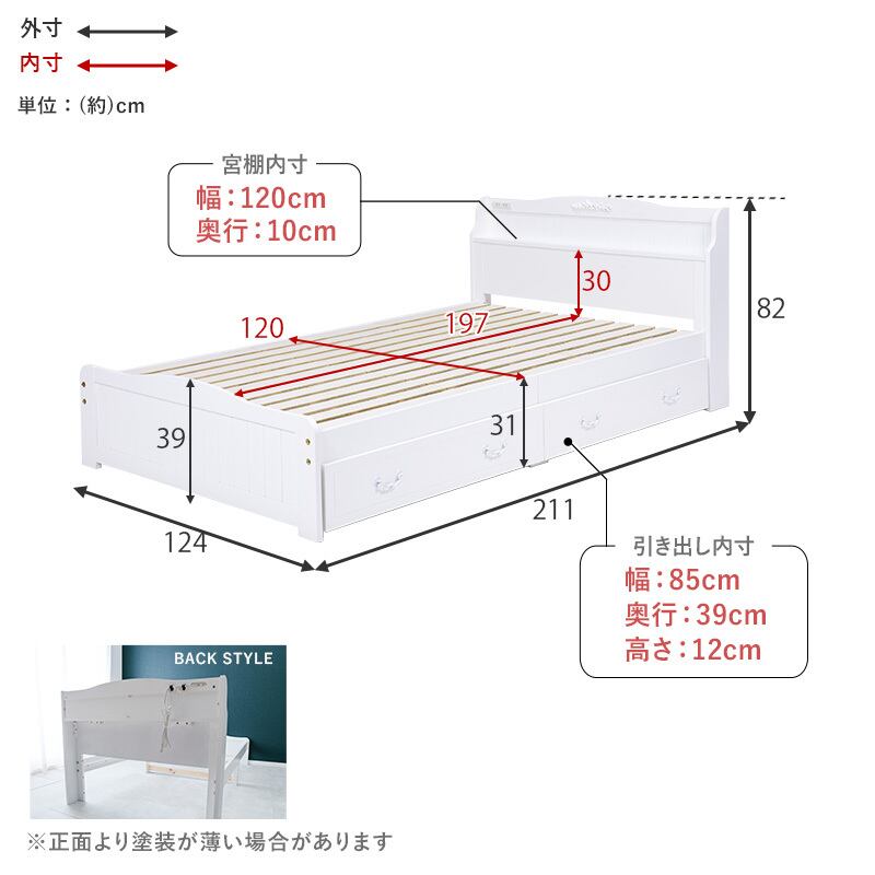 ベッド:(約)幅124×奥行211×高さ82×床面高31cm
