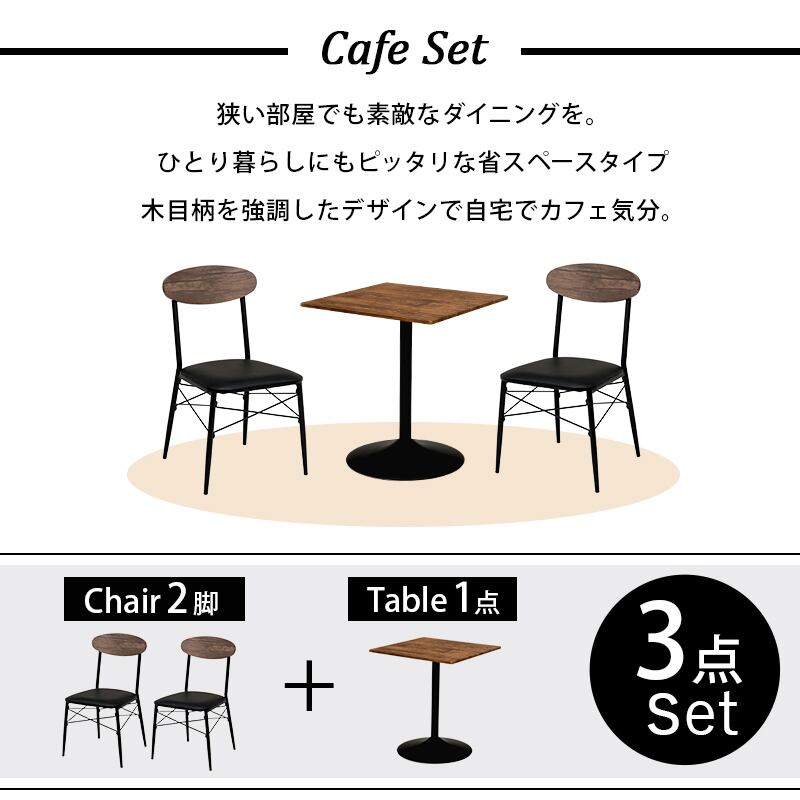 [幅60cm] 角型 カフェテーブル&[座面高42cm] チェア2脚 3点セット 8601
