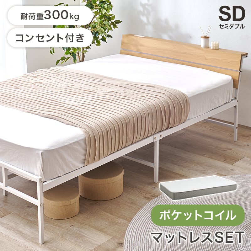 [SD] マットレス付セミダブルベッド ポケットコイルマットレス 8601