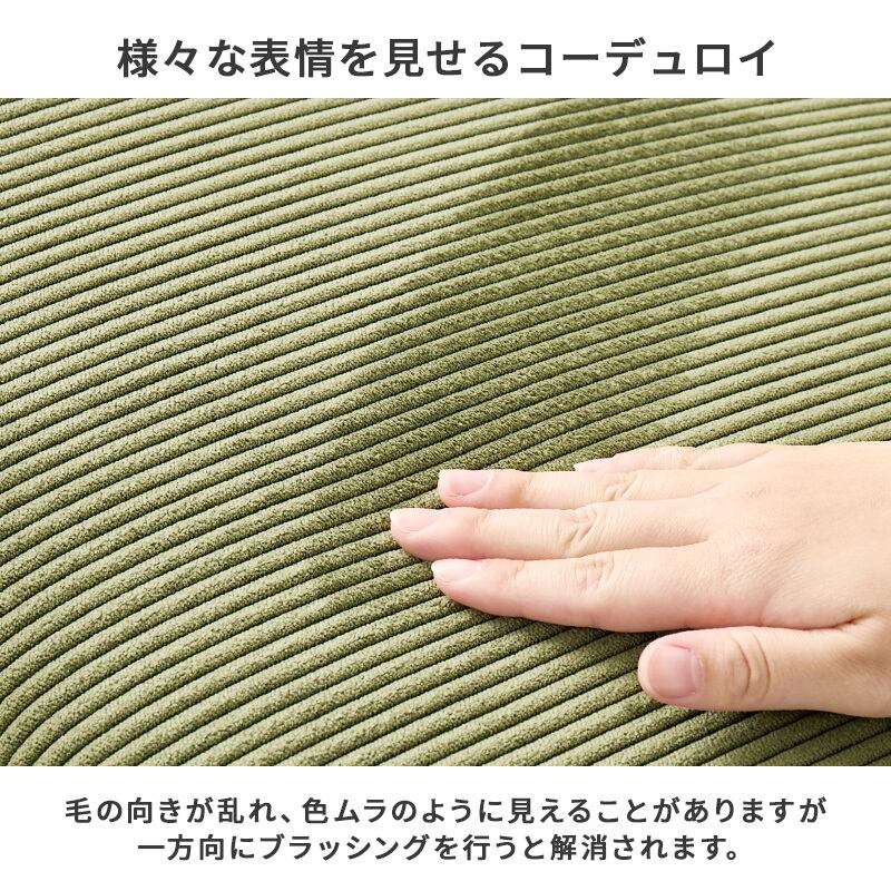 お部屋のアクセントになるコーデュロイ生地を使用。肘が無いのでコンパクトタイプだけど座面は広々。ダイニングソファやワンルームのソファとしてもおすすめ。