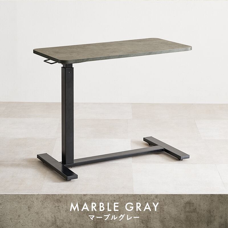 [幅80cm] 無段階昇降サイドテーブル キャスター付 大理石 木目 補助テーブル 韓国インテリア 8601