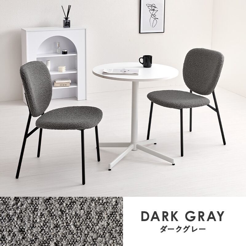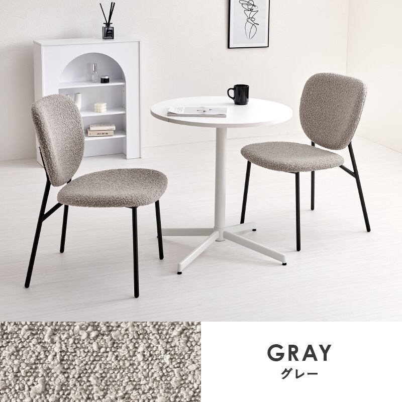 ぽこぽことした質感が特徴的なブークレ生地のチェアとホワイトカフェテーブルを合わせた、モダンでありながら温かみのある雰囲気の3点セット。
