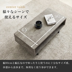 [幅90cm] コンクリート柄センターテーブル オープンタイプ ローテーブル 8601