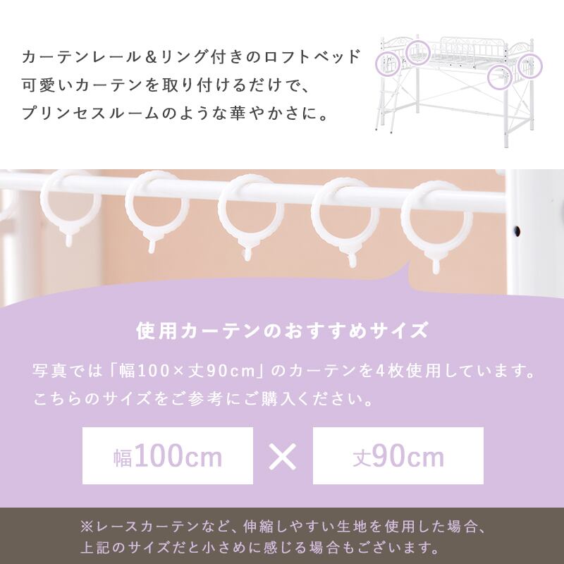 [S/ロータイプ] カーテンを取り付けられる パイプ ロフトベッド プリンセス 8601