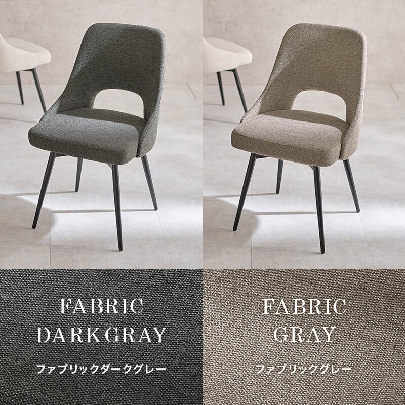 座面が360度回転するので立ち座りがスムーズ。張地はヴィンテージ感のある合成皮革とサラッとした手触りのファブリックから選べます。