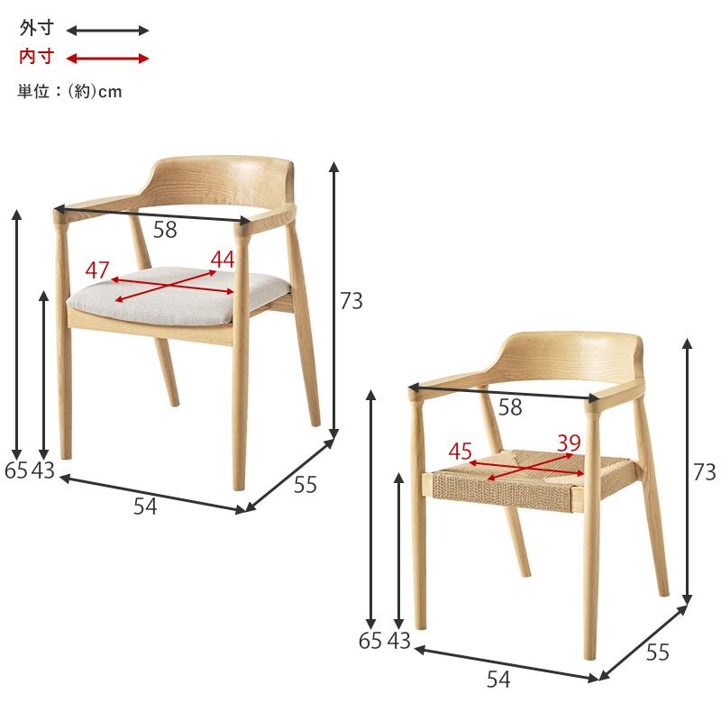 主材:天然木(アッシュ)、張地:<PC>ペーパーコード<CA・BK>合成皮革、<BE>ポリエステル