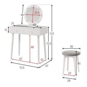 ドレッサー:(約)幅75×奥行47×高さ122×天板高75.5cm