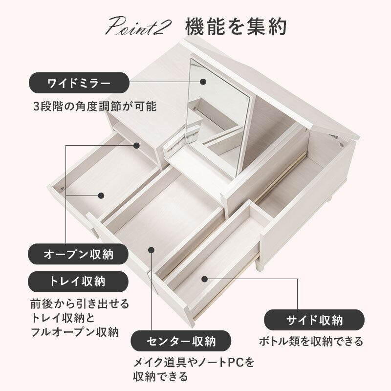 天板を開ければドレッサーとして使えるセンターテーブル。幅75cm