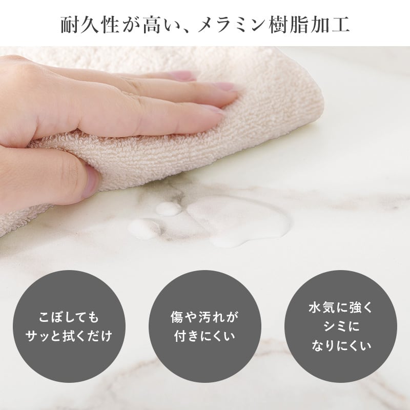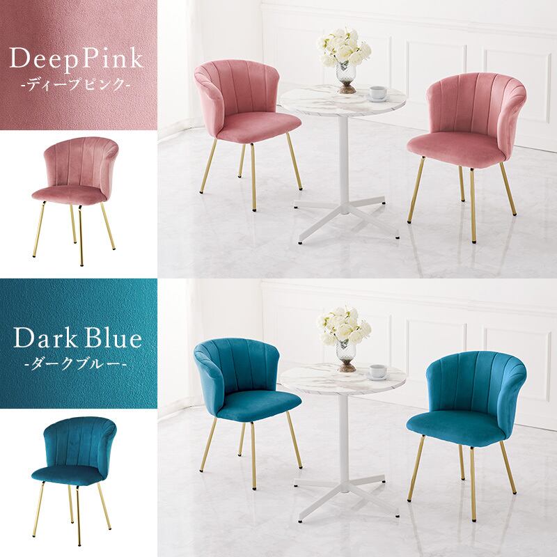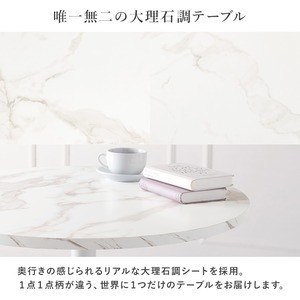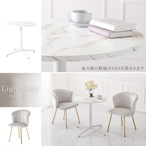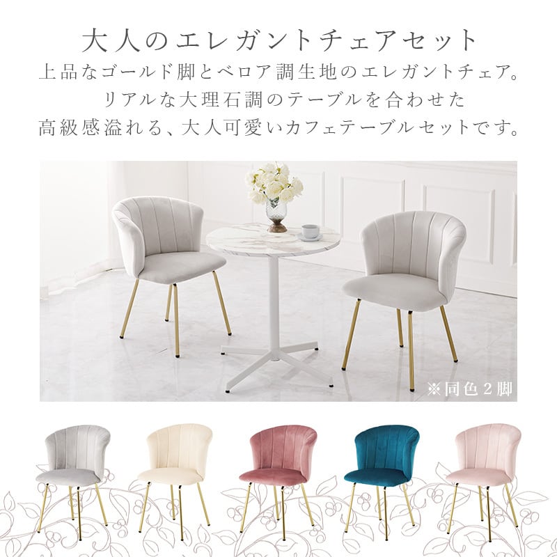 ベロア調生地のチェアと、リアルな大理石調天板のカフェテーブルを合わせた上品で大人かわいい3点セット。