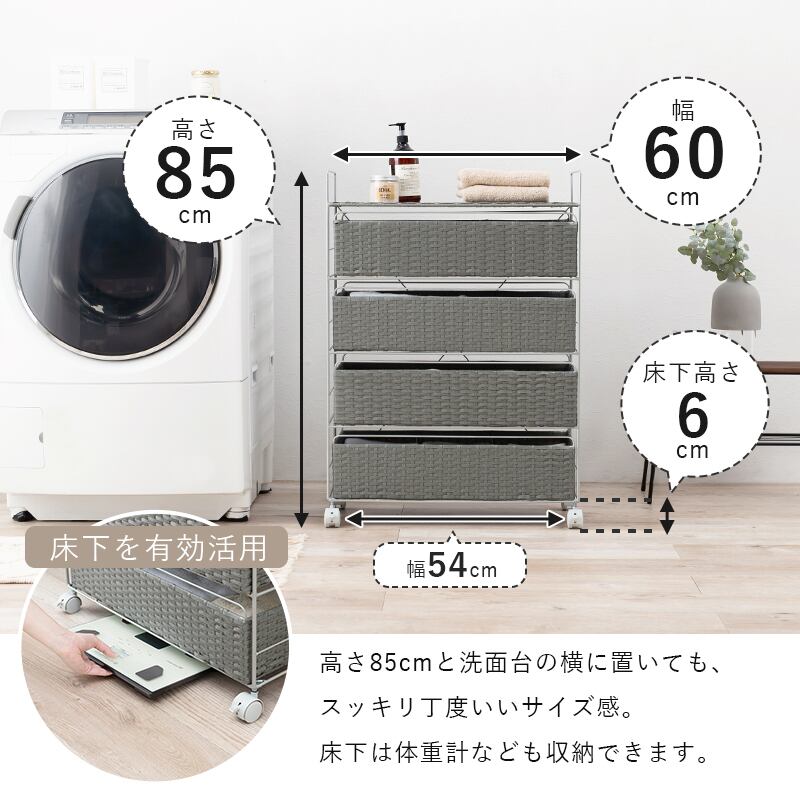 [幅60cm] ランドリーラック 収納ラック デッドスペース収納 隙間収納 サニタリーラック チェスト 8601