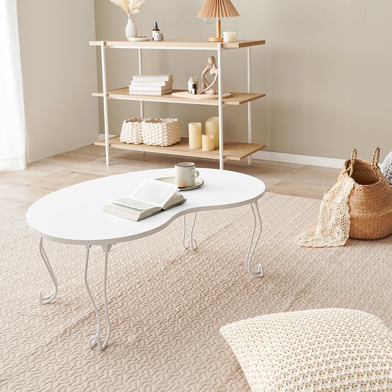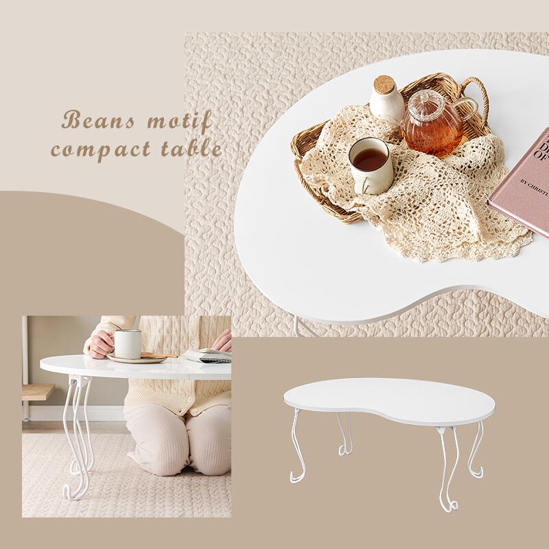 ゆるくカーブした愛らしいデザインのビーンズテーブル。折れ脚タイプなので必要な時だけサッと広げて使えます。