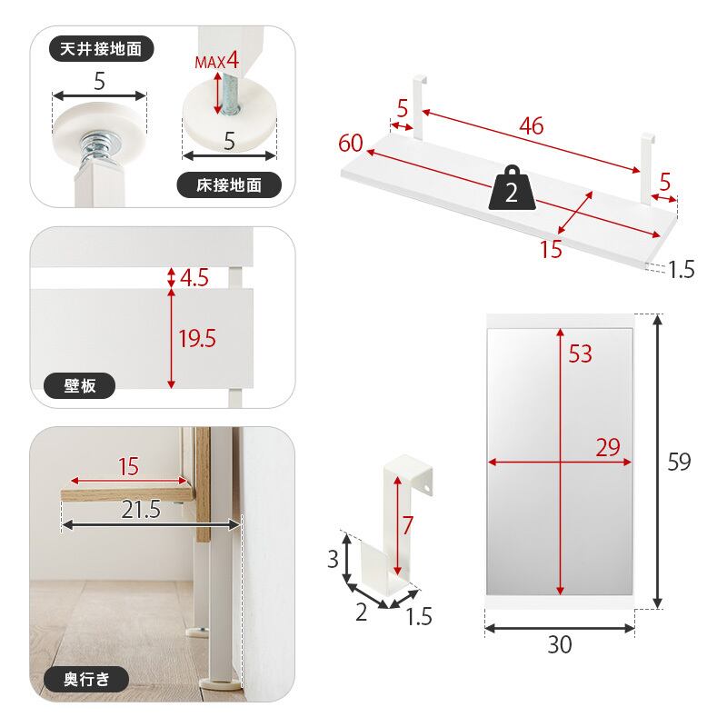 [幅60cm] 突っ張りミラー付きラック 突っ張り収納 8601