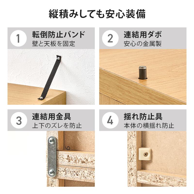 ■組立式■転倒防止バンド付■連結用ダボ・金具付■可動棚4枚