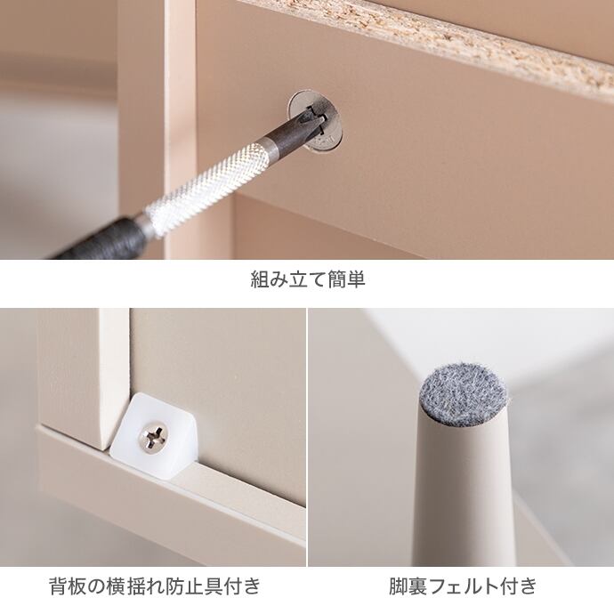 品のある框(かまち)デザインと柔らかなニュアンスカラーが印象的な『Calan(カラン)』シリーズのレンジ台。シャンパンゴールドの取っ手と美しい框デザインはお部屋のアクセントとなり、感度の高い海外インテリアのような空間へと導きます。また、柔らかなニュアンスカラーで甘すぎない大人な可愛さもプラス。
