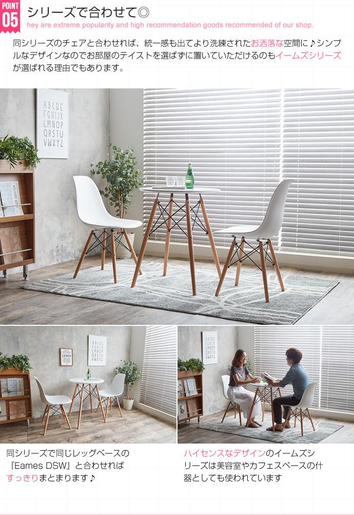 60・70年代のモダンデザインのパイオニアとして活躍したデザイナーのチャールズ&レイイームズ。不朽の名作イームズシリーズから『Eames TABLE』が登場しました。清潔感のあるクリアなホワイトカラーが印象的な天板とイームズシリーズならではのダウェルレッグとの組み合わせが、モダンテイストとミッドセンチュリーテイストをうまく融合させたアイテムとなっています。お家にいながらお洒落なカフェにいるかのような贅沢な時間を味わうことができますよ♪