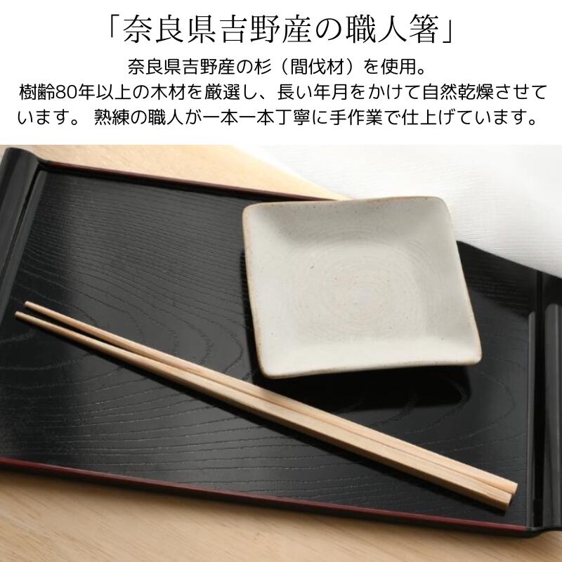 美しさと実用性が共存する『匠の箸 杉角箸 24cm 1P』。職人による手作業で仕上げられたこの箸は、杉の心地よい香りと温もりを感じながら、日常の食卓をより一層華やかに演出します。しっかりとした角形状は、食事を楽しむための最適なサポートを提供し、和食はもちろん、洋食やデザートまで幅広いお料理との相性も抜群です。