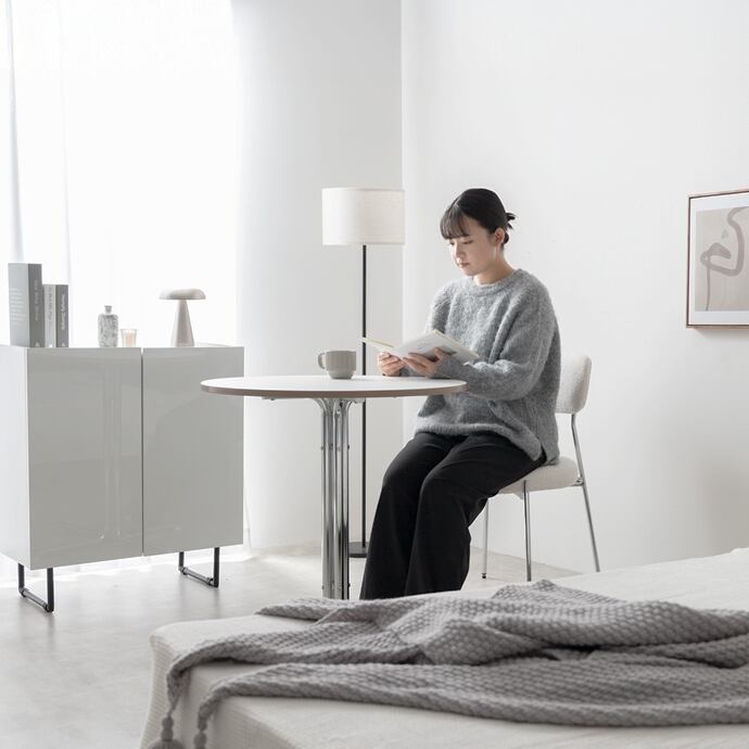 洗練されたシンプルデザインで、様々なテイストのお部屋に溶け込む『Stjerne(スチャーナ)』丸型カフェテーブル。その独創的なフォルムは置くだけでアクセントになり、まるでホテルのような洗練された雰囲気を演出。実用的なサイズの天板とお手入れしやすい加工により、快適に長く愛用していただけます。