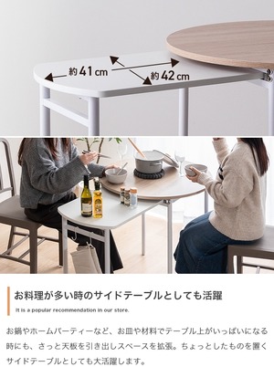 [幅75〜116cm] 伸縮スライド式ダイニングテーブル 丸型 2704