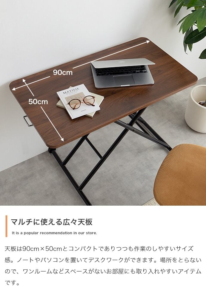 サイズ 幅90cm?105cm×奥行53.7cm×高さ10.2?70.5cm(天板サイズ:90cm×50cm)