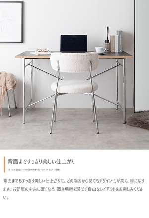 ダイニングスペースを特別な空間へと導くダイニングチェア。モコモコ生地×シルバー脚のデザインは、モダンで大人な雰囲気を醸し出します。またカーブの利いた背もたれや沈み込みの少ない広めの座面で、座り心地も抜群です。一味違った空間で快適な食事時間をお楽しみください。