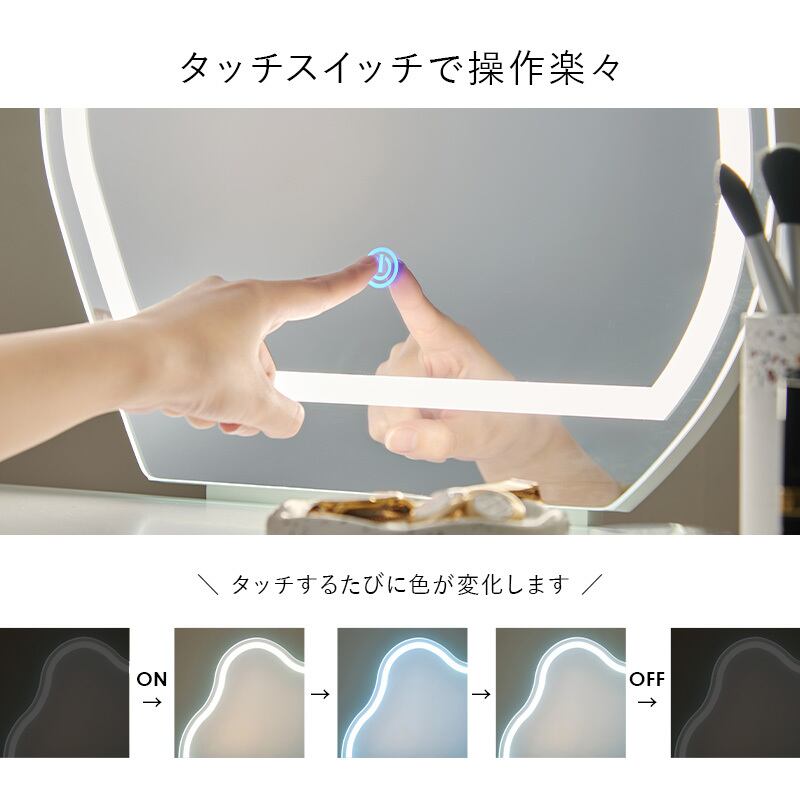 LED女優ライト付きドレッサー 化粧台 ウェーブミラー