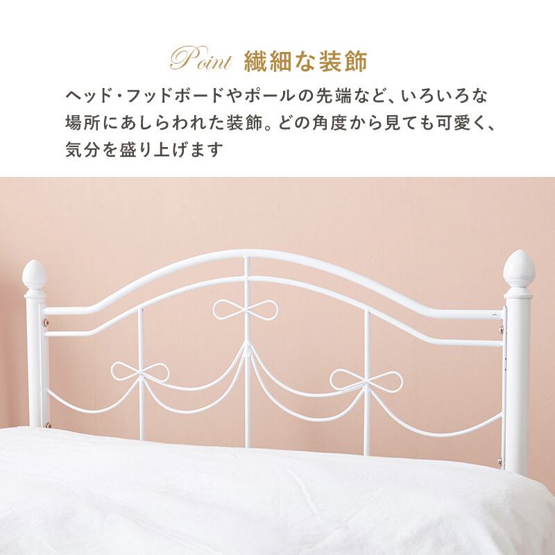 [シングル] マットレス付スチールベッド ポケットコイル リボン模様 姫系