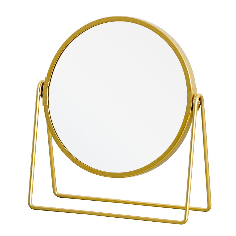 3倍鏡付卓上ミラー(ロータイプ) メイク ヴィンテージ 置き型 ゴールド 真鍮風 ひとり暮らし 拡大鏡