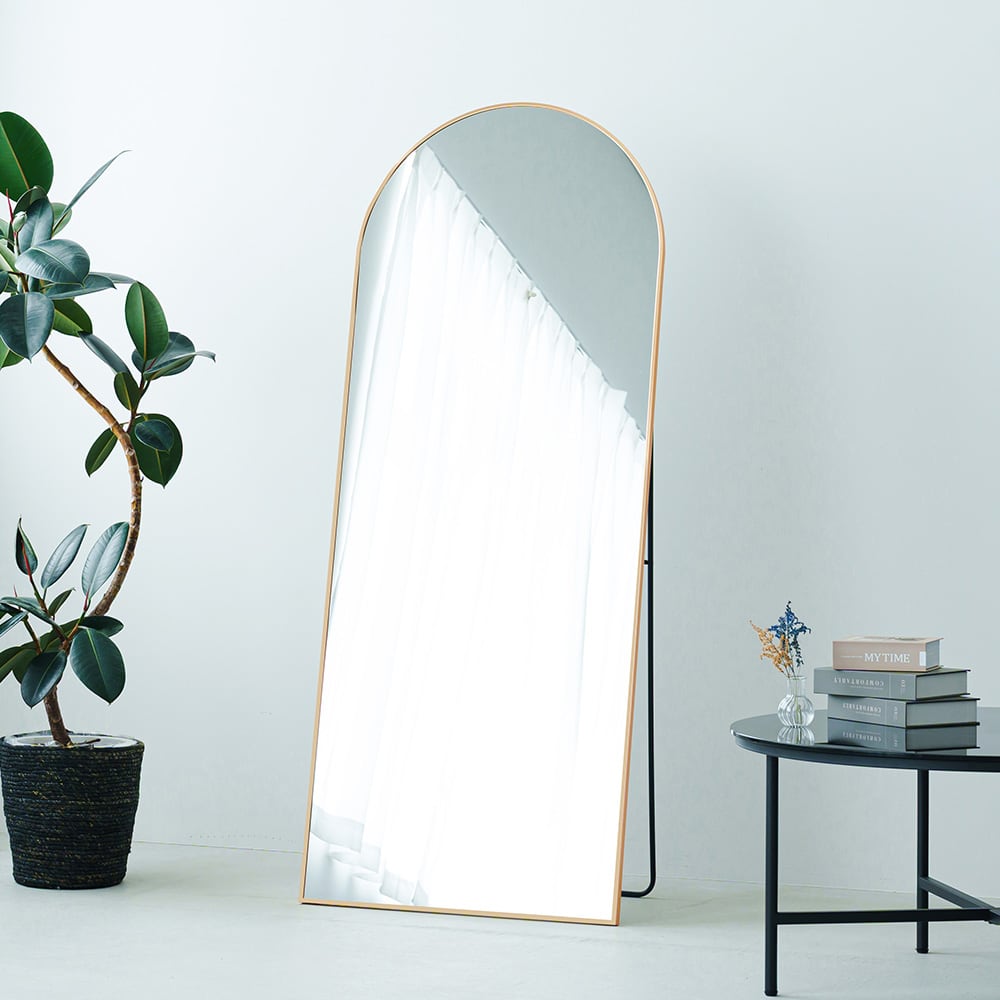 繊細なフレームラインが印象的なアーチ型スタンドミラー ルーミー