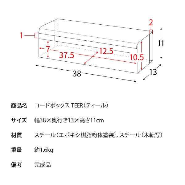 [幅38cm] コードボックス TEER スチール 完成品 スタイリッシュ 2701