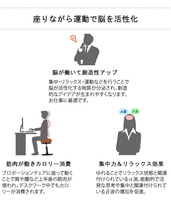 プロポーションスツールに座ることで適度な運動を行い、仕事を効率よく進めましょう。
