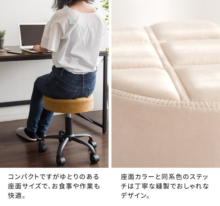趣あるキルティング座面がおしゃれなラウンド昇降スツール『Efirica(エフィリカ)』。
