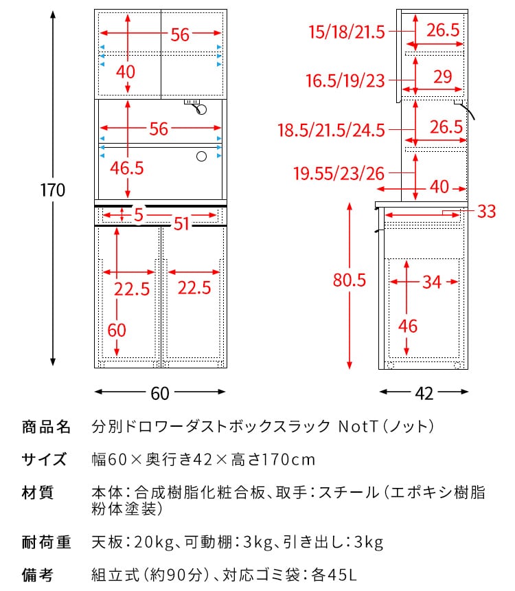備 考 組立式(約90分)、対応ゴミ袋:各45L