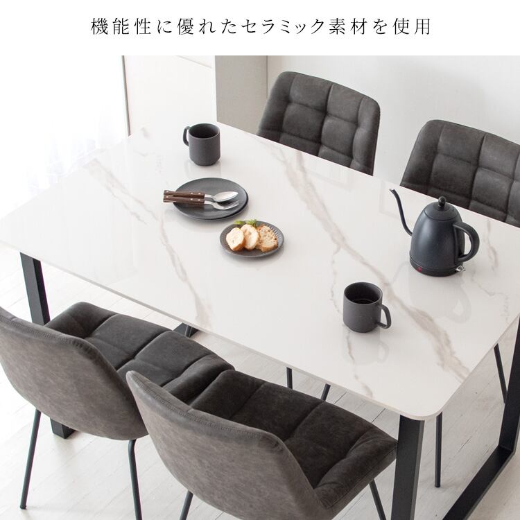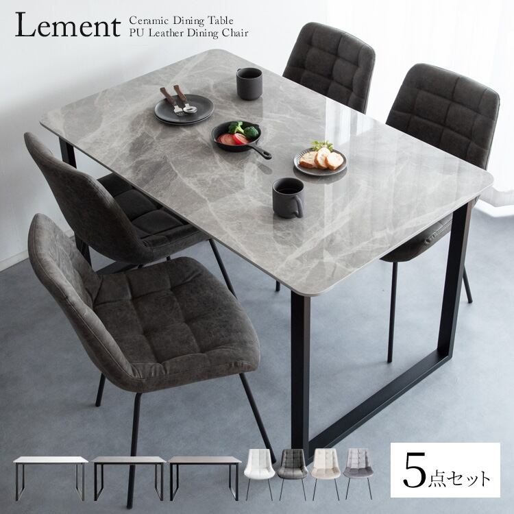 セラミック ダイニング5点セット Lement(レメント) ダイニングテーブル 4人掛けテーブル 四人 ダイニング セラミック素材 テーブル デスク 作業台 木製テーブル 食卓 長方形 大理石柄 ダイニングチェア キルティング 四人掛け 4脚セット 5点セット 宮武製作所