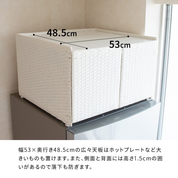 冷蔵庫上ラック Rifero 冷蔵庫 デッドスペース 可動棚 隙間収納 すき間 ラタン 扉 ホットプレート キッチン収納 キッチンラック 北欧 収納ボックス 冷蔵庫上ケース 2701