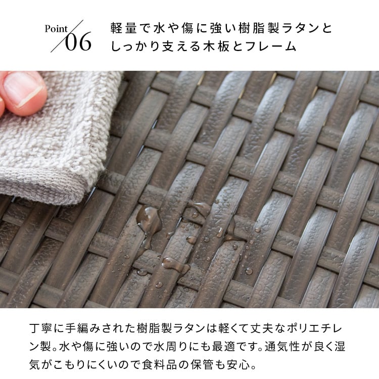 材 質 ポリエチレン、スチール(粉体塗装)、MDF(ラッカー塗装)