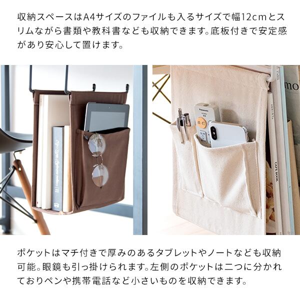 ダイニングテーブルやデスクに引っ掛けるだけで新聞や雑誌が収納できる布製ハンギングラック『COLGA(コルガ)』。