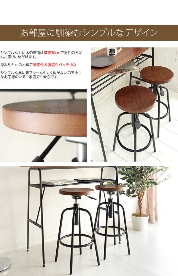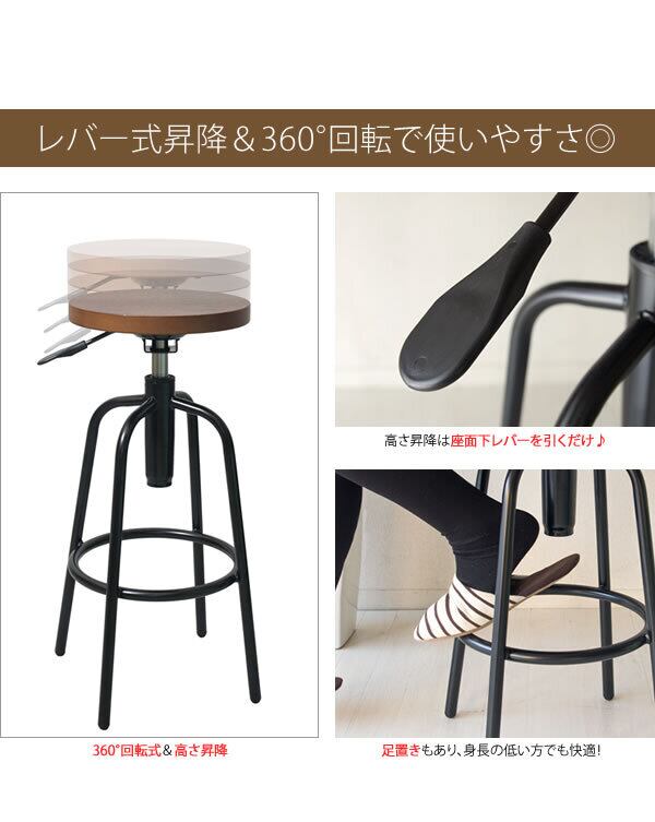 カウンタースツール Viola 天然木突板貼り合板 スチール 360度回転 2701