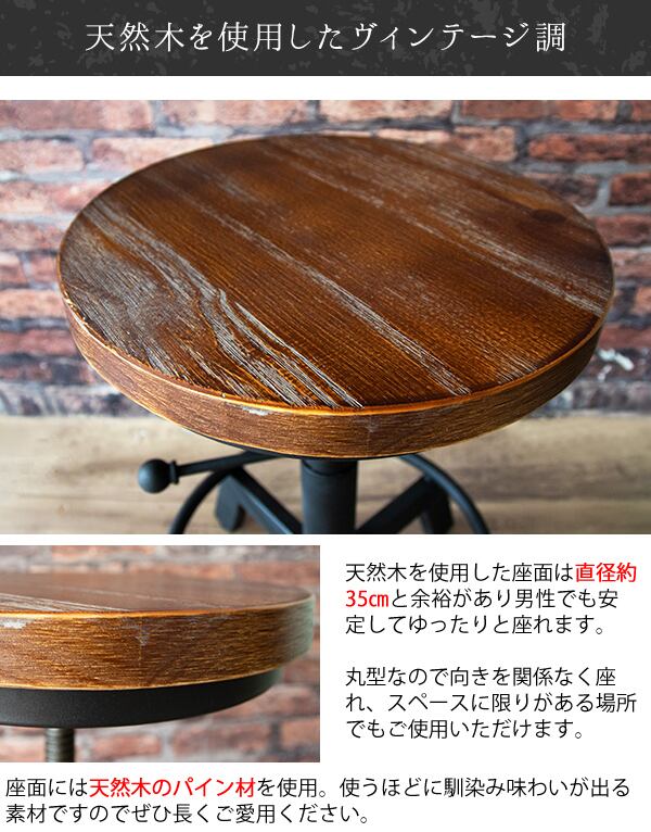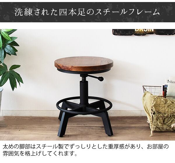 昇降スツールINDUSTRIAL(インダストリアル)[丸型スツール]昇降スツール 玄関スツール カウンタースツール 椅子 イス 天然木 2701