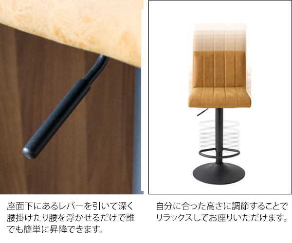 バーチェア Passe カウンターチェア ヴィンテージ 背もたれ付き ガス圧昇降 2701