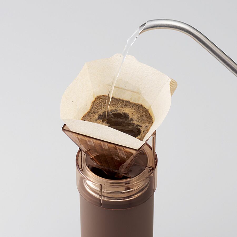 この商品では専用のドリップパーツが付属してますので、挽いた豆を直接ボトルにドリップでき新鮮なコーヒーが味わえます。