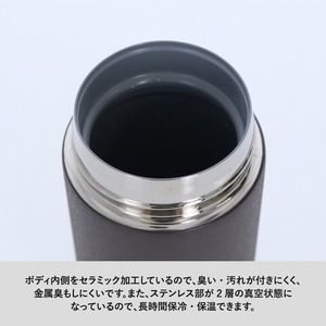 ボディ内側をセラミック加工しているのでコーヒーにも金属臭がしにくく美味しく飲めます。