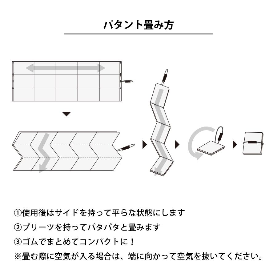 プリーツ加工されている生地を使用しているのでプリーツに沿ってパタパタするだけで簡単に畳めてコンパクトに持ち歩けます。