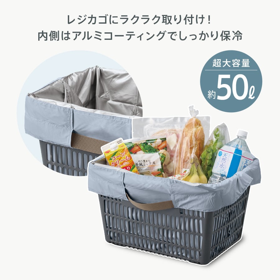 大きいレジカゴにもピッタリフィットするサイズ感で、週末のお買い物にピッタリです。