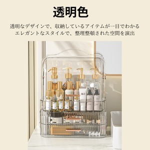引き出し式と仕切り構造で、化粧水や乳液、マスクパック、リップ、アイシャドウなどをすっきり整理できます。