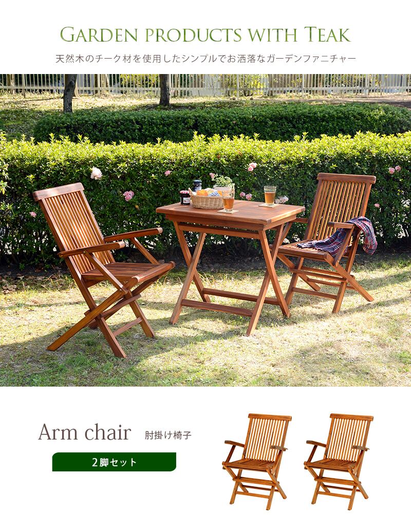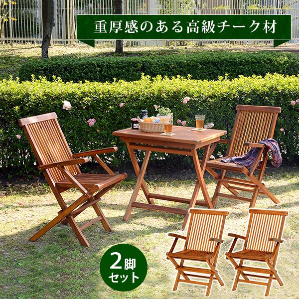 [幅54cm] 折りたたみアームチェア2脚セット チーク材使用 木製 折りたたみ式 ガーデンチェア 北欧風 8601