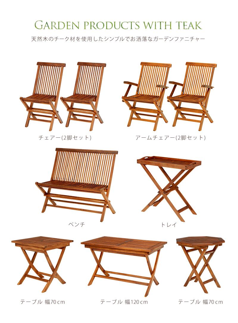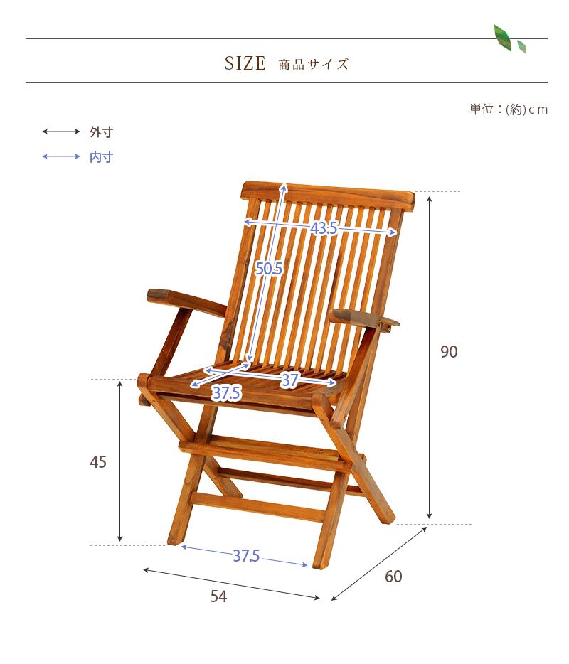 天然木のチーク材を使用したシンプルなチェア。折りたたみ式なのでシーズンオフの収納にも困りません